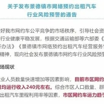 【网约车司机想月入一万,得拼命干10几个小时】广州网约车司机日均营收创新低,一些网约车司机即便是“整月无休”,在未扣除用车成本的情况下月收入也不超1万元。之前景德镇就提醒慎入网约车行业,运力饱和,每辆车日均不超20单。